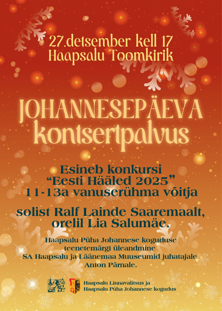 Johannesepäeva kontsertpalvus 27.12 kell 17:00